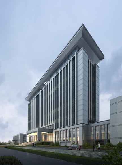 设计理念“自然山水”源于杭州“三面云山一面城”的独特地理格局。建筑包括一座主写字楼(含酒店)和四座写字楼。主楼体块错落有致,拟天然山石层峦叠嶂之态。各体块立面以多种水平线条构成不同肌理,并暗示地质层的丰富变化。外墙材质采用铝合金玻璃幕墙和石材幕墙,从而呈现稳重而犀利的面貌。每栋建筑有最佳景观的朝向设计,且各楼空间呼应,形成和谐的整体,与一期如水韵动的建筑形式,组成山水相依之势;同时也将为新区最终构成“背山面水、藏风聚气”的总体布局。